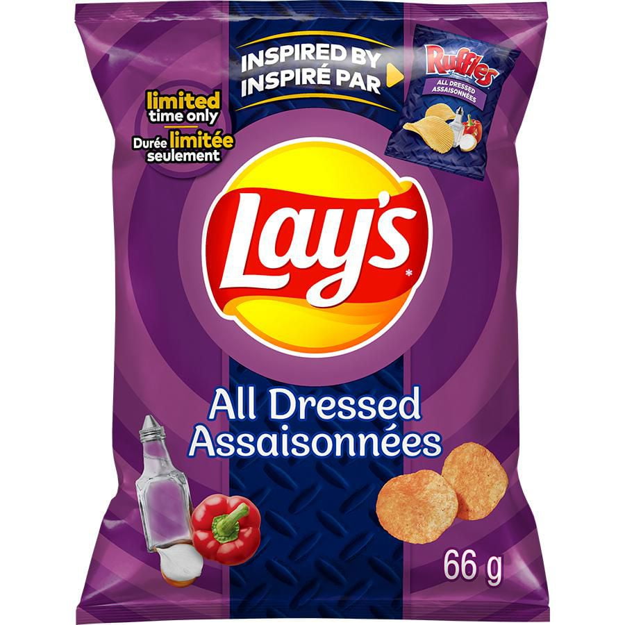 Up to 7 cash back In Canada all dressed means delicious ridgey chips that taste like a blend of all the classics. 85 oz bag of ruffles all dressed flavored potato chips. No other Ruffles products sizes or flavors of chips were recalled and bags of the All Dressed chips.