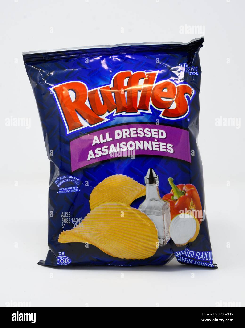 Reading United Kingdom July 13 2020 A Packet Of Ruffles All Dressesd Crisps From Canada Stock Photo Alamy